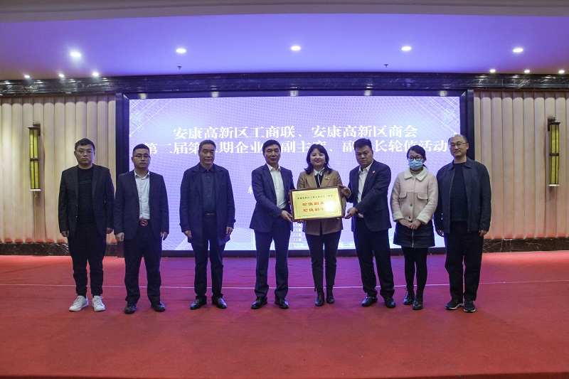 会上,陕西睿智实业集团党总支书记陈命金作了交流发言。进行了第三期轮值牌交接仪式,由安康市龙翔教育、博创宏远新材料、陕西华银科技、陕西鼎澈膜科技四家副主席、副会长单位接牌。