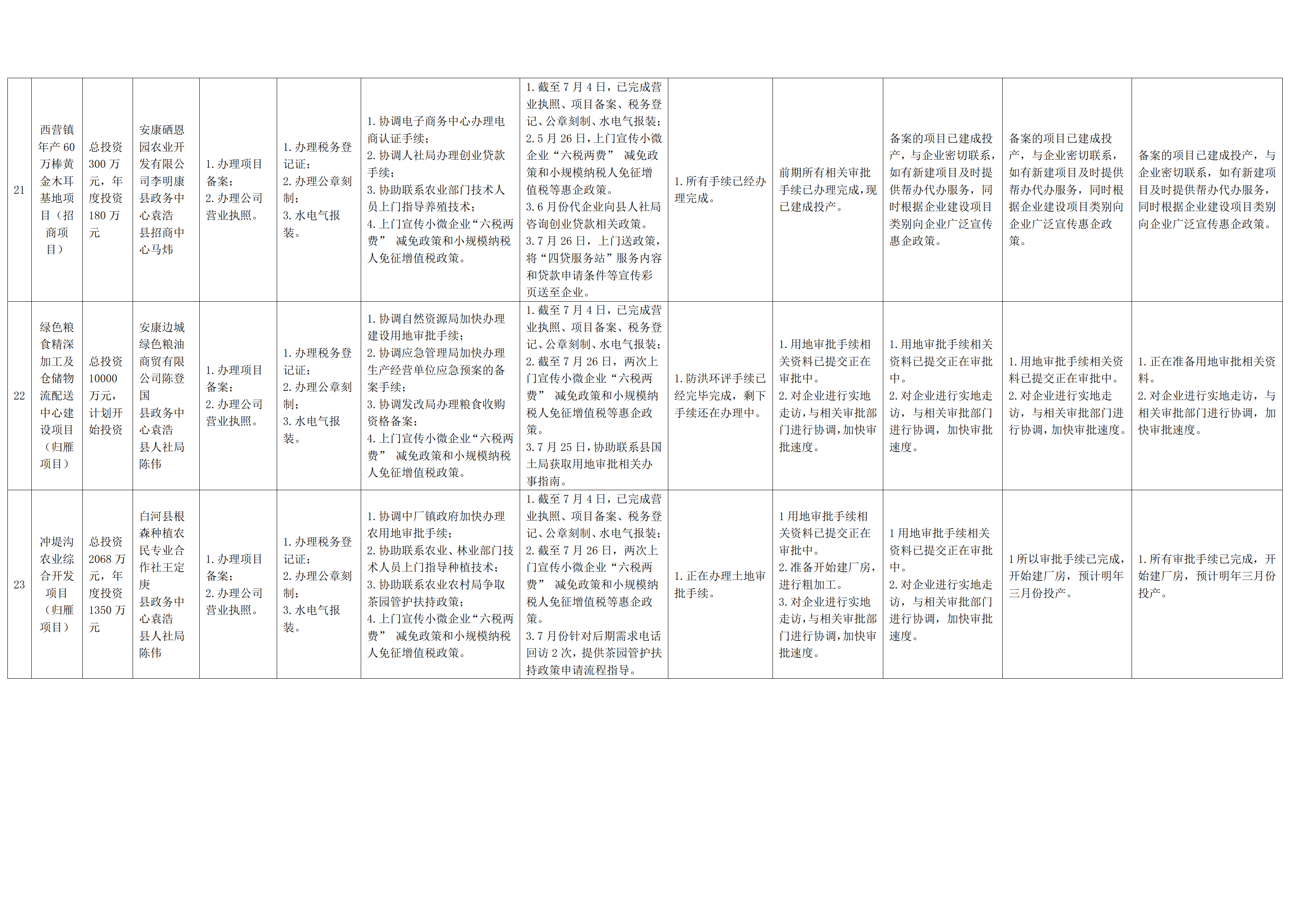 2022年度“春风服务行动”帮办代办项目及工作进度统计表(白河县)