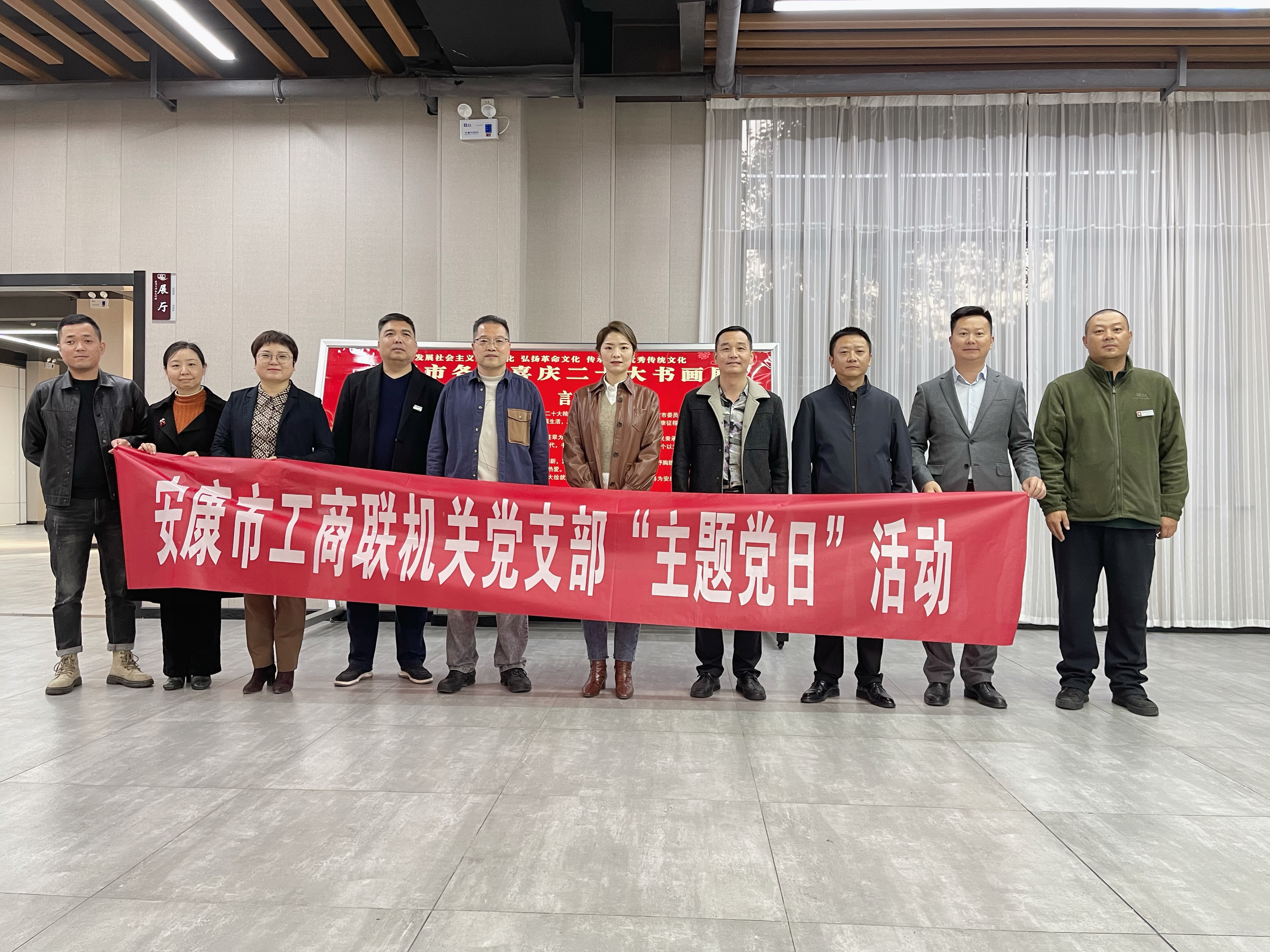 11月1日,安康市365bet线上注册_office365_英国365bet日博组织民营企业家到市群艺馆开展参观喜庆二十大书画展主题党日活动。安康市365bet线上注册_office365_英国365bet日博主席马倩,副主席潘杰、易昕、胡晓山共同参加活动。