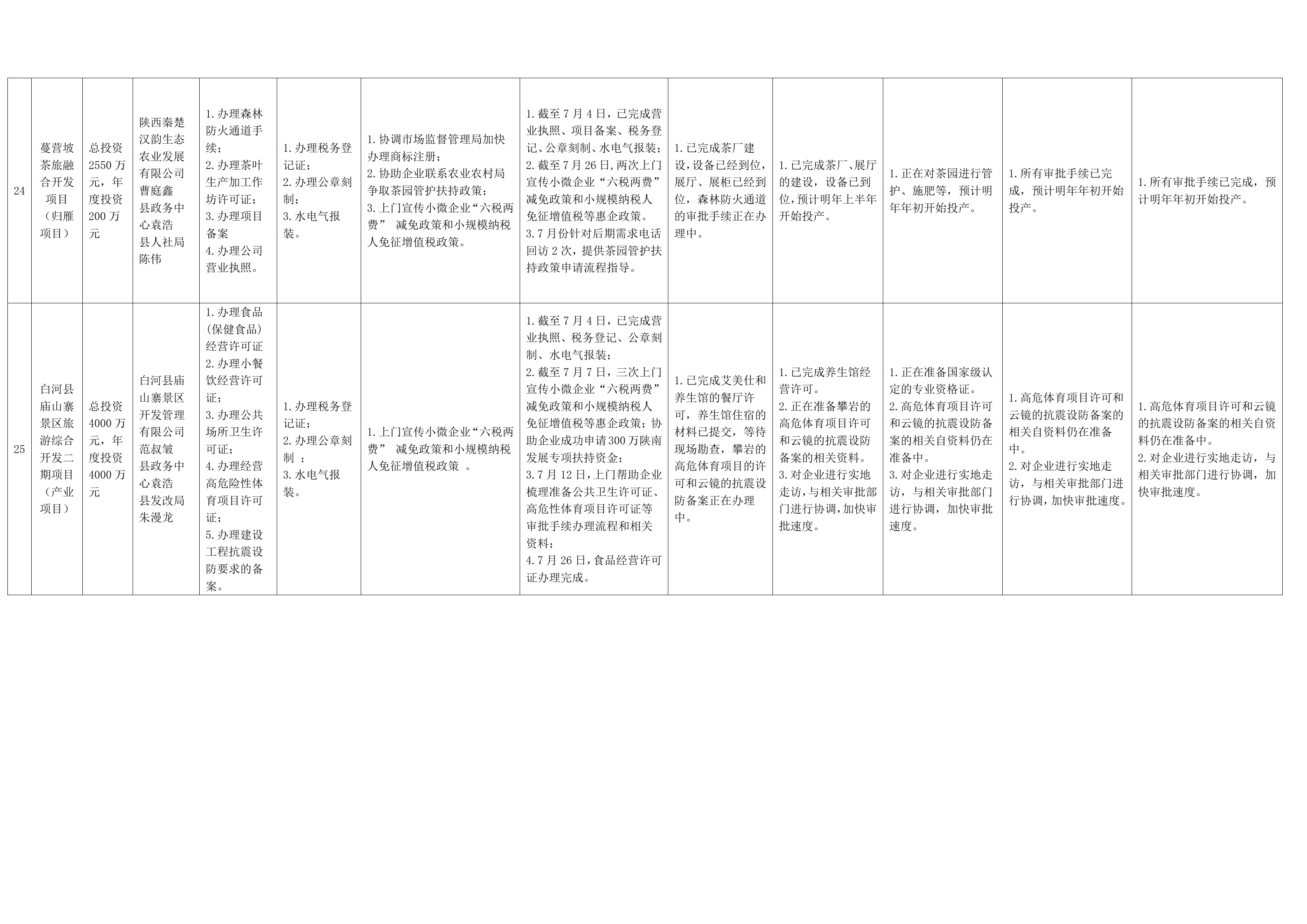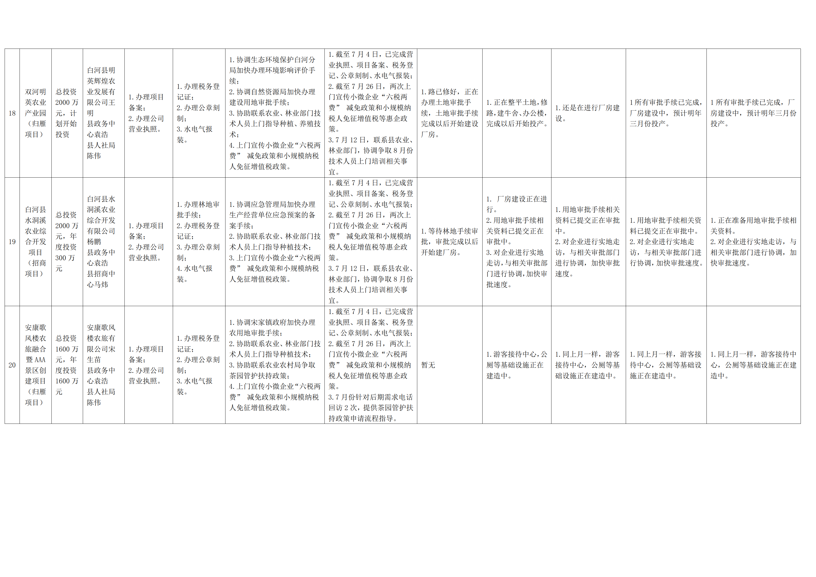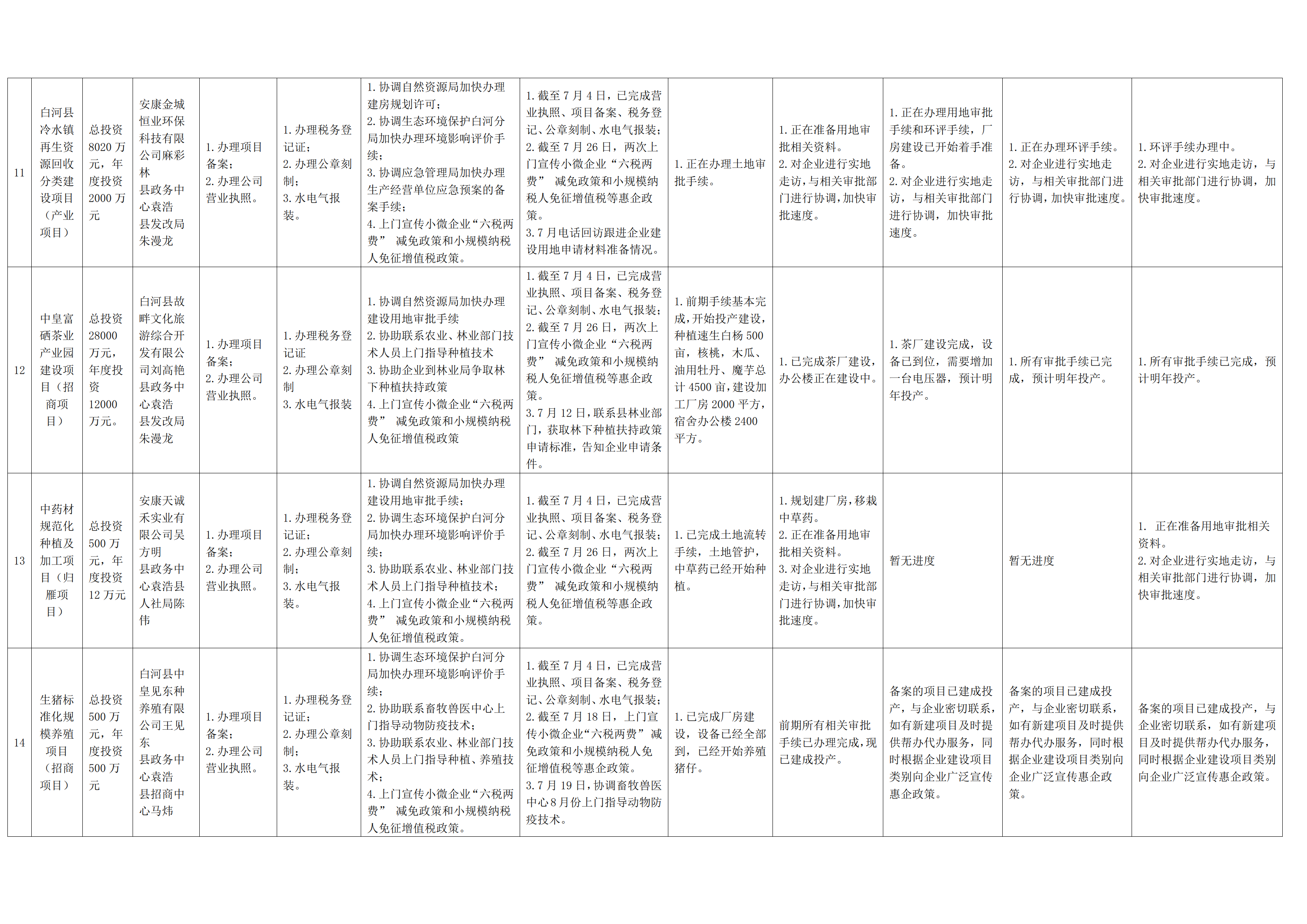 2022年度“春风服务行动”帮办代办项目及工作进度统计表(白河县)