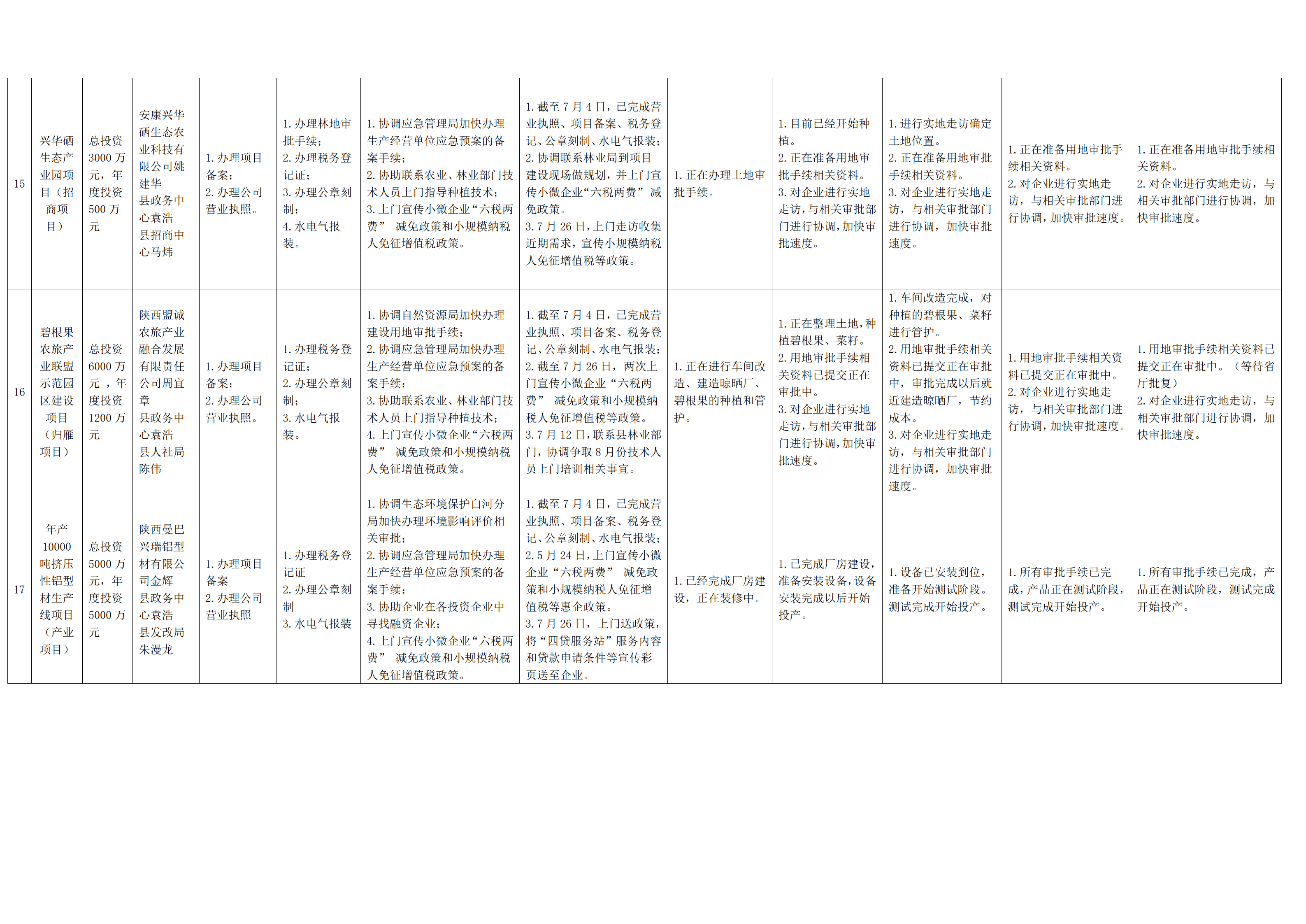 2022年度“春风服务行动”帮办代办项目及工作进度统计表(汉阴…
